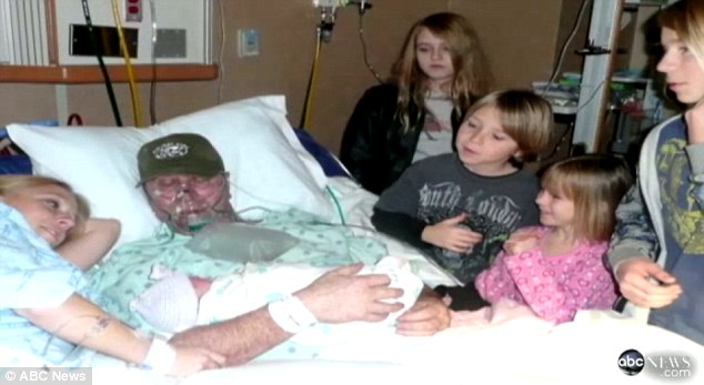 She added that despite his being in a coma, her husband was aware of the new baby. 'If she cried, he would shake his head and moan,' Mrs Aulger said. 'I put her on him when he was in the coma a few times and his hand would move toward her.'