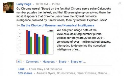 While this is a very small segment of users, we’re not implying that Chrome users are the most brilliant people on the planet. In fact, we’ve been hoaxed on something like this before in the past. However, Google’s CEO Larry Page was pretty excited about the results: